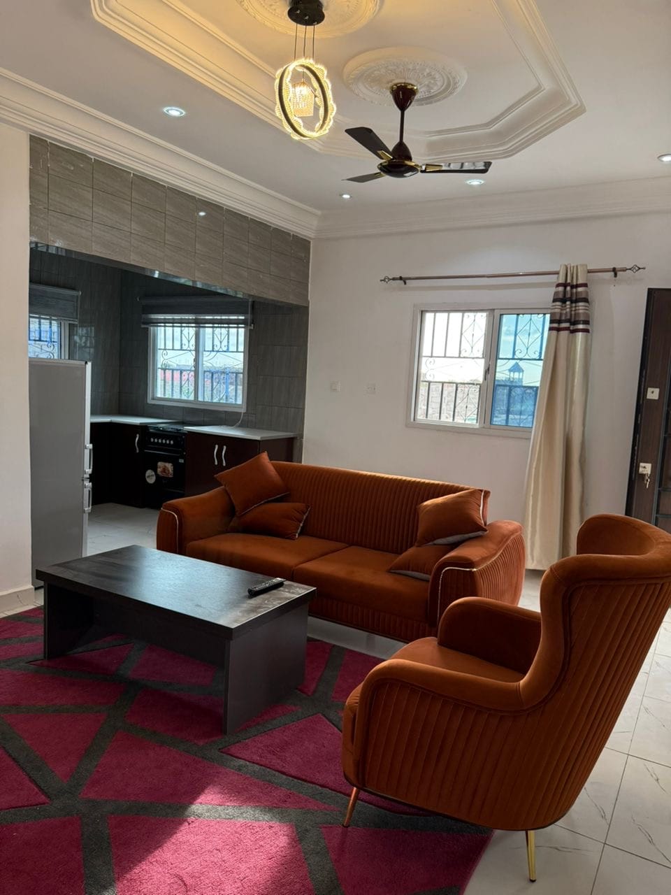 Beautiful apartment in private compound. -Brand new construction -Foreigner-friendly space -Super cold A/C, Fast Wi-Fi -European shower with hot water -Smart + YouTube TV. Use your Netflix! -New bed + bedding -Small kitchen with single gas round, fridge+freezer, kettle, dishes + utensils -Families welcome -Gated comunity. Privacy guaranteed! No guards or dogs to bother with! -Very safe location on second floor with modern locks Specials Available: -Airport pickup: 3000 dalasi -Meal: 500 dalasi