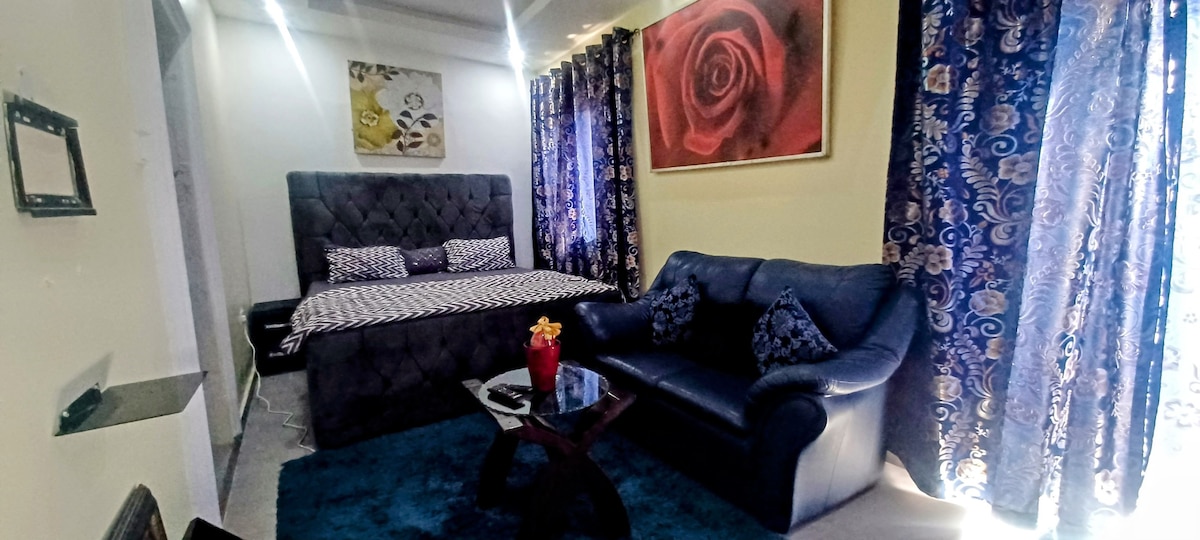 Forget your worries in this spacious and serene space. This beautiful cozy room makes you feel like living in a mini palace. The 24 hour security Cameras, 24 hours running water and Excellent electricity supply gives you the comfort and peace you desire.. Wif is available.