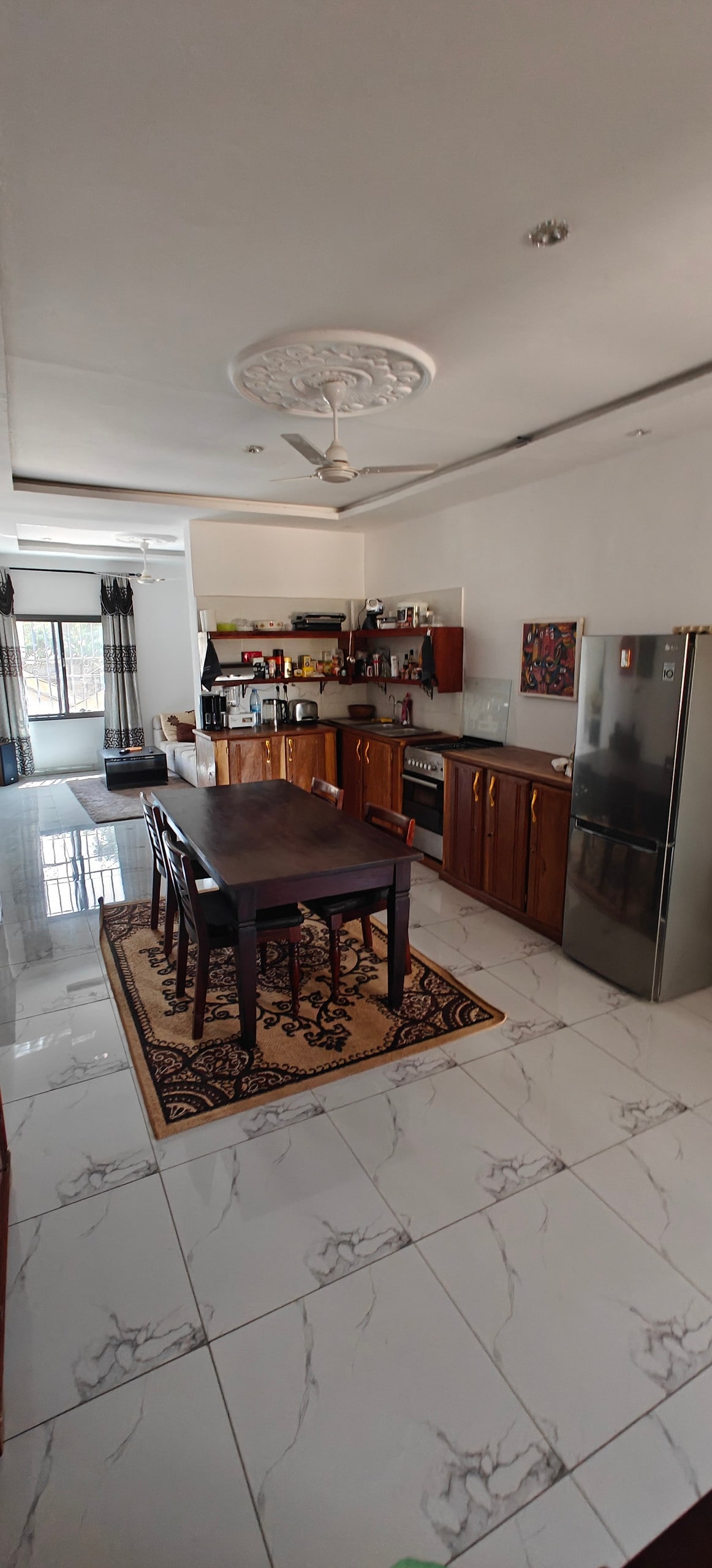 A full compound for rent! This is a 3-bedroom bungalow on a massive plot for your perfect holiday in the gambia! Fully furnished and well located in Bijilo. The living room is well designed and comes with a 65 inch TV. The living room is connected to the dining area and the fully equipped open kitchen. The master bedroom has an ensuit toilet + shower with water heater. There are 2 more bedrooms and another bathroom