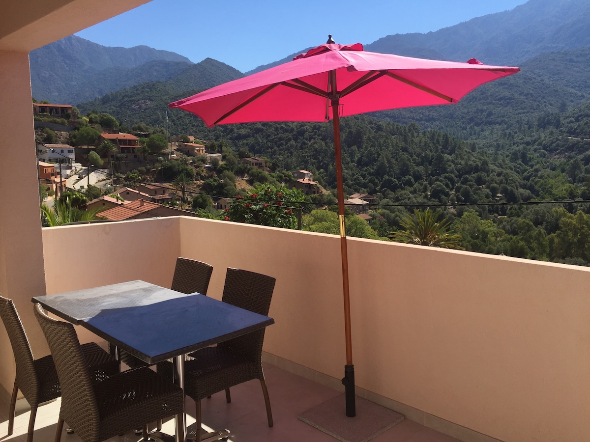 Passez un agréable séjour dans cet appartement calme, spacieux,et décoré avec soin. Proche de la rivière qui offre de nombreux points de baignade, à 10 minutes de Porto (site classé au patrimoine mondial par l'UNESCO), point de départ pour visiter la réserve de Scandola, mais aussi idéalement situé pour les amateurs de randonnée,Ota est un village authentique Parking privé, vue splendide sur le village et les montagnes, idéal pour 2 personnes ou pour un couple avec enfants (canapé convertible).