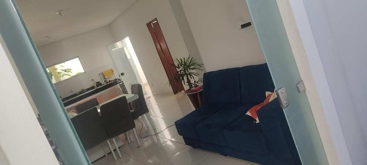 Esta casa oferece o equilíbrio perfeito entre conforto e praticidade, com fácil acesso à escola, mercado e padaria. Características: 2 quartos (1 suíte) e 3 banheiros 2 camas de casal + 2 colchões de solteiro Sala com 3 sofás (1 retrátil) Cozinha equipada (fogão, geladeira, micro-ondas, cafeteira, sanduicheira, bebedouro) Área de serviço com máquina de lavar Wi-Fi, 2 TVs, ventilador Garagem para 2 carros Aceitamos pets Câmeras de segurança (áreas externas) Ambientes arejados e iluminados