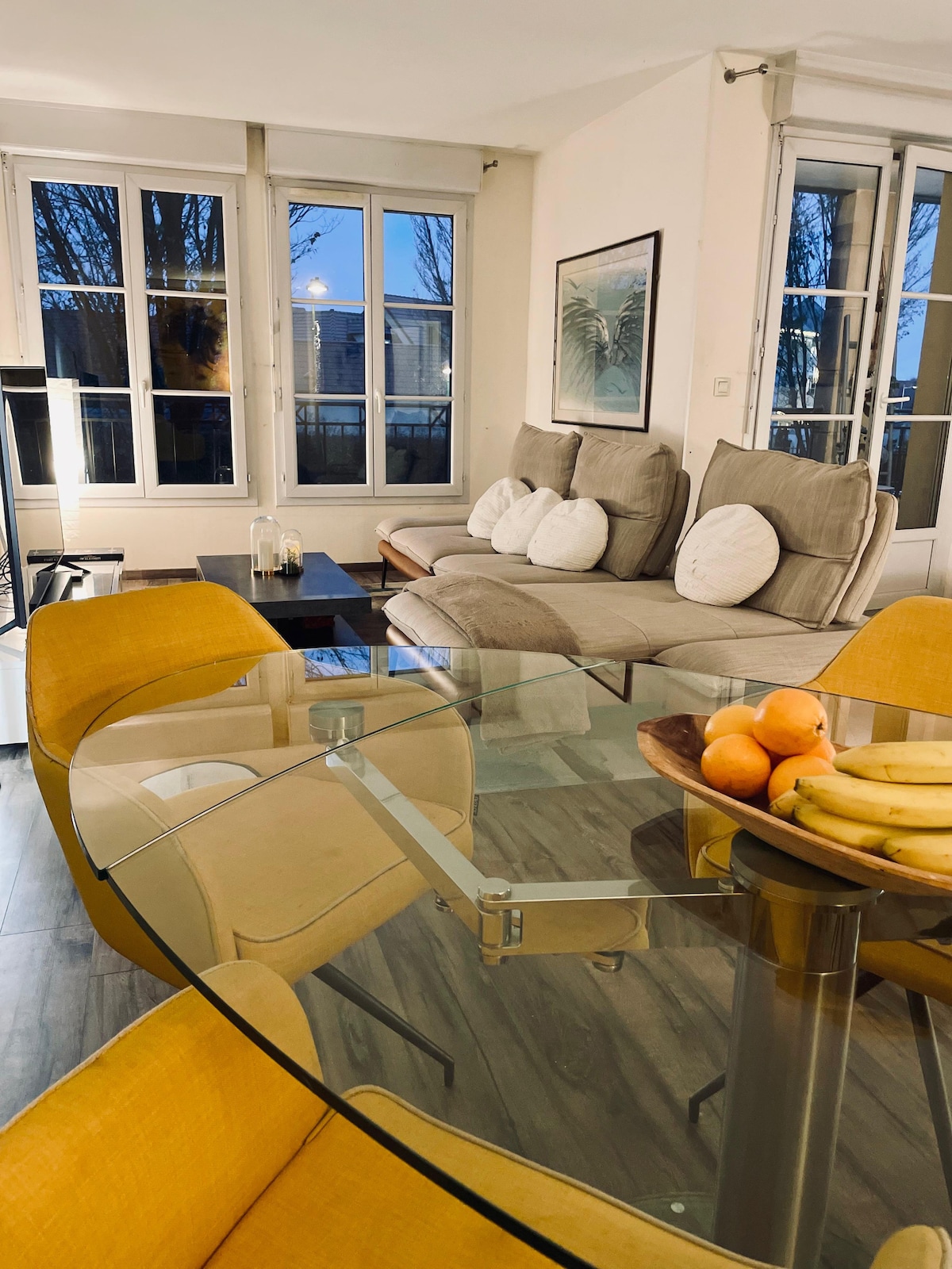Welcome to this stunning 63m² apartment with a furnished balcony, fully renovated and elegantly decorated. 📍Enjoy a PREMIUM location: 🏰 4 min to Disneyland by car 🚊 1.5km from the RER station with direct access to Paris in 35 min 🛍️ 5 min walk to Val d’Europe & La Vallée Village Outlet 🅿️ 2 private parking spaces available. 🛌 Equipped for 4 guests, can accommodate up to 6 (linen extra). Every detail has been thoughtfully designed to make your stay unique and unforgettable.