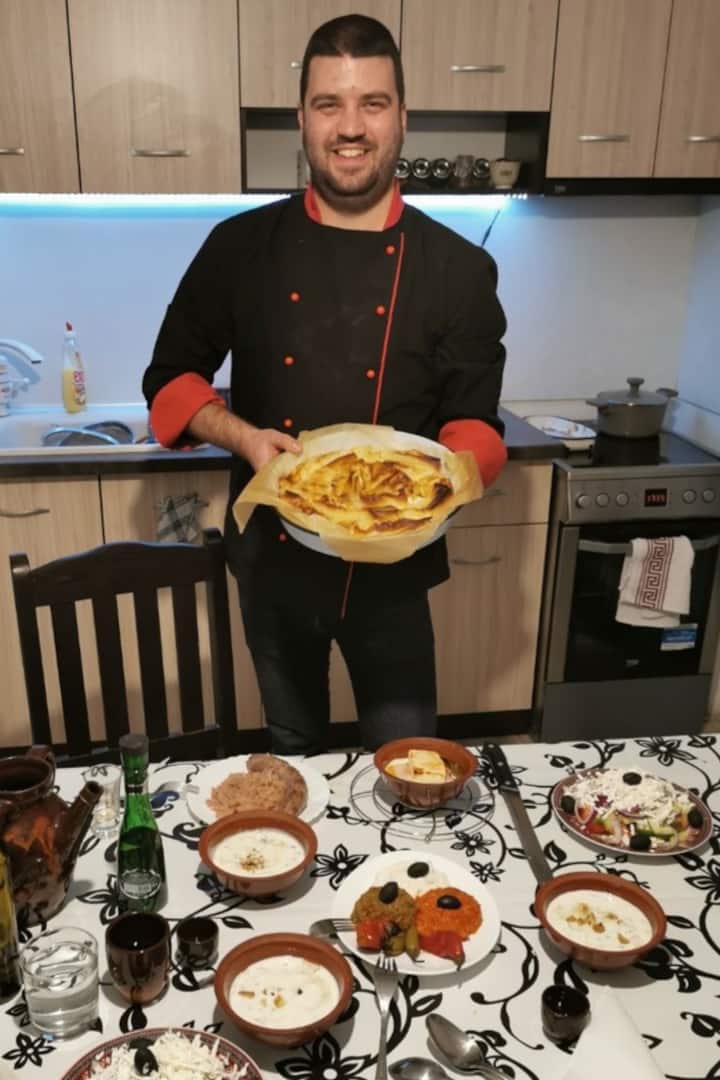 品尝保加利亚美食,包括保加利亚酥皮卷、塔拉托汤、主菜、酸奶和水果甜点。