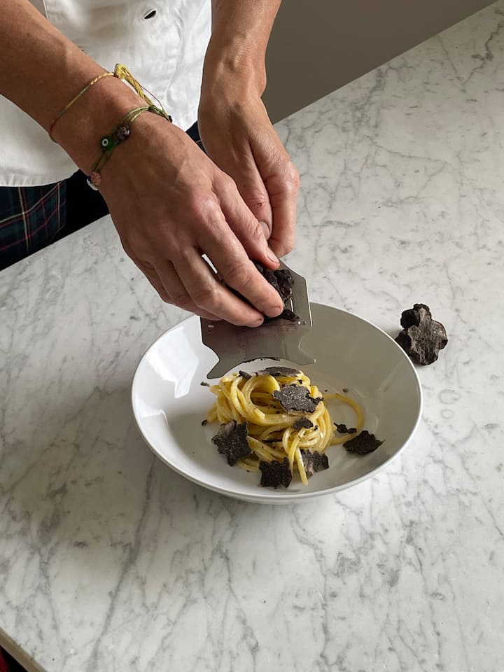 尽情享用奢华的松露菜单,包括新鲜的意大利面 tagliolini 和牛肉生牛肉片甜点:提拉米苏