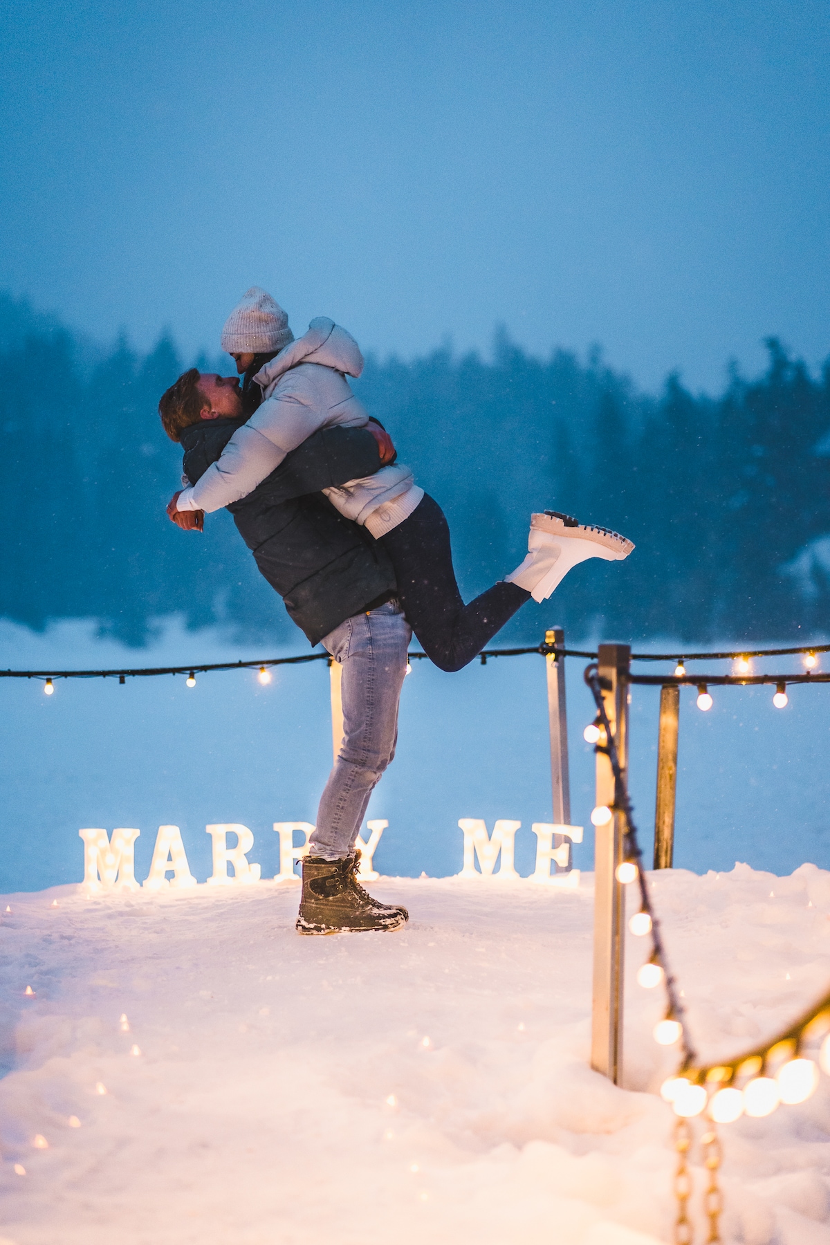在惠斯勒的山脉或湖泊中捕捉真实的互动或求婚时刻。
