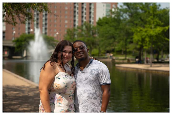 在印第安纳波利斯市中心的运河上漫步,在黄金时段的光线下拍摄照片。编辑后的照片将通过电子邮件发送。