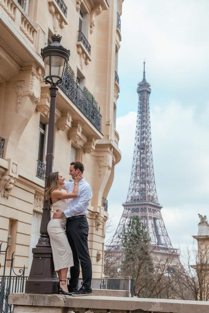 计划在巴黎求婚? 我们知道一个完美的隐藏景点,可欣赏壮丽的埃菲尔铁塔景观。 我们将帮助你准备这一刻,并将其完整记录下来。 选择简单的拍摄,或添加我们的浪漫布置,包括红地毯和「Marry Me」字母。 给伴侣带来难忘的惊喜,留下一段值得永远分享的故事。 请告诉我们您的意向,我们将通过电话讨论详细信息!