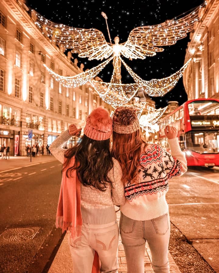 体验伦敦圣诞夜的璀璨魔力:五彩缤纷的灯光、节日人潮和永恒的节日氛围。