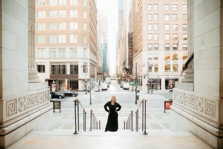 在您选择的地点(DUMBO、FiDi、华盛顿广场公园或布莱恩特公园)为独自旅行者和当地人拍摄 30-45 分钟的照片。