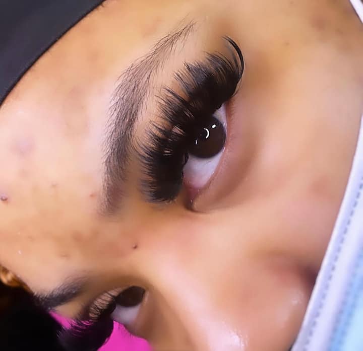 混合式假睫毛是 70/30 的经典和丰盈睫毛混合,使外观更加精致。