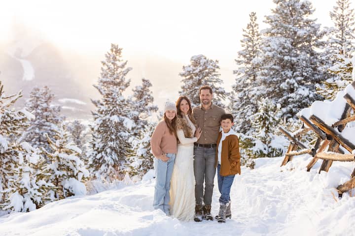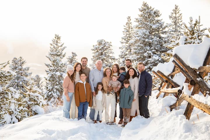 在风景秀丽的山区环境中拍摄最多 20 位模特。此次拍摄包括您的所有数字文件,因此您可以获得整个团体的照片,以及每个核心家庭、夫妻、孩子、祖父母和其他组合的照片。