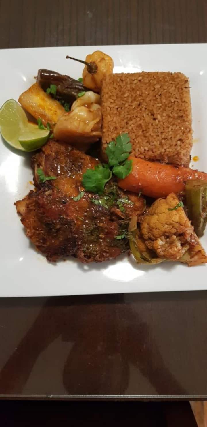 我提供融合了塞内加尔和当地风味的美食,精致而美味。