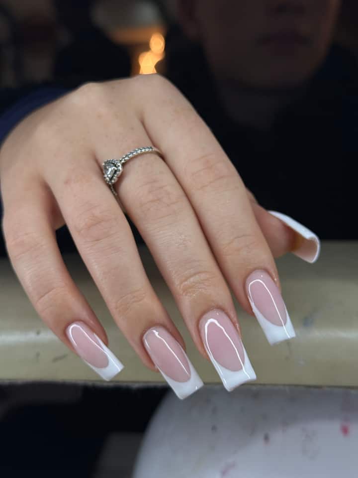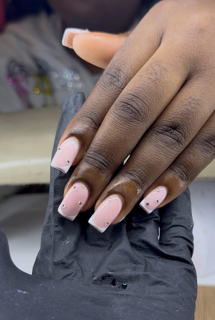 使用全套亚克力美甲,指甲尖与甲床涂成不同的颜色,打造自然妆容。传统上,甲床是裸色或浅粉色的。