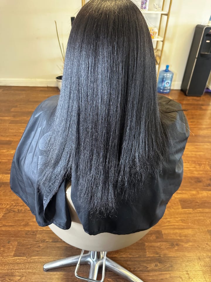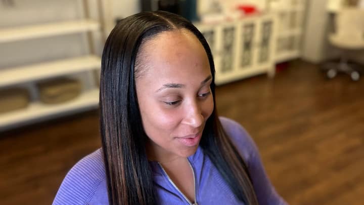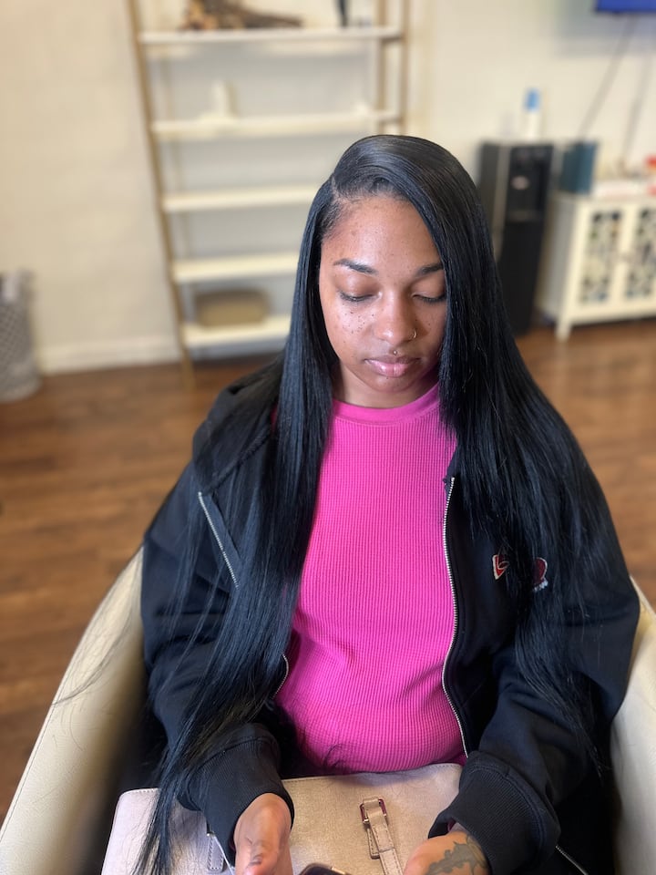 一种保护性发型,使用针线将接发缝制到编好的真发上。这种方法可以增加头发的长度和发量,同时可以打造多种发型,有助于保护自然发质,减少日常操作。