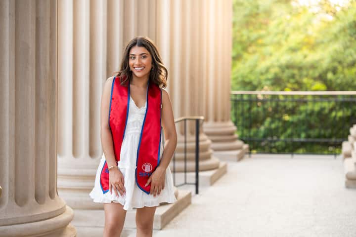 在您选择的地点拍摄照片,庆祝您的成就,您可以戴上毕业帽、穿上毕业礼服,并携带您想要的任何其他配饰!