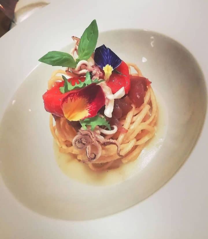 精致的海鲜之旅,包括扇贝配焗烤香草和焦糖梨、墨鱼烩饭配布拉塔奶酪和鞑靼虾、薄荷蜂蜜腌制剑鱼和香脆柠檬挞。新鲜、优雅、令人难忘。