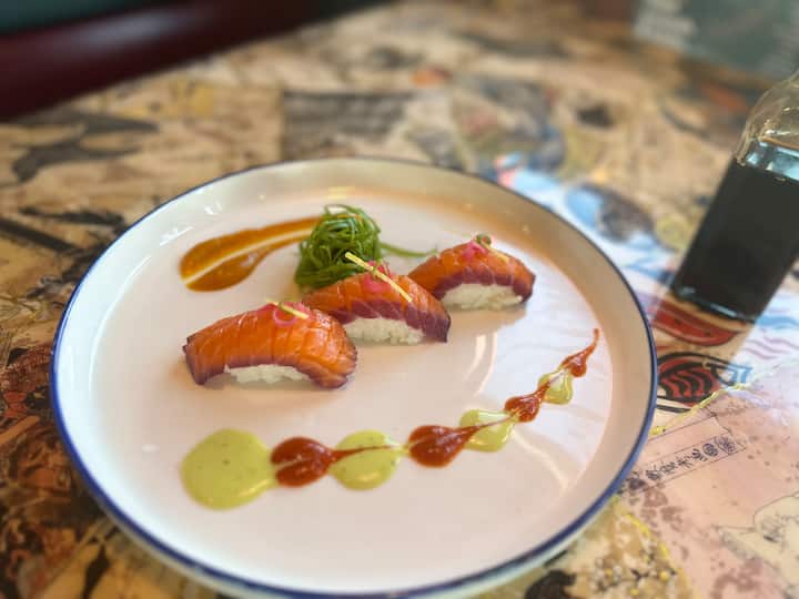 在大厨的带领下,亲手制作寿司。在大厨的指导下,参与者将使用优质食材制作寿司饭、卷寿司、内卷寿司和手卷寿司。这是一场精致的互动体验,融合了工艺、交流和烹饪乐趣。