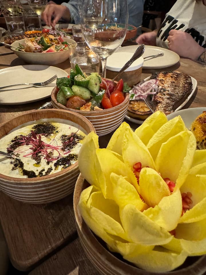 轮换的主厨精心制作的开胃小菜,包括鹰嘴豆泥和巴巴甘努什等活力四射的蘸酱、酸奶黄瓜酱等香草酱、烤制的蛋白质和时令蔬菜。 大胆、均衡地融合了质地和风味,专为舀取和分享而打造。