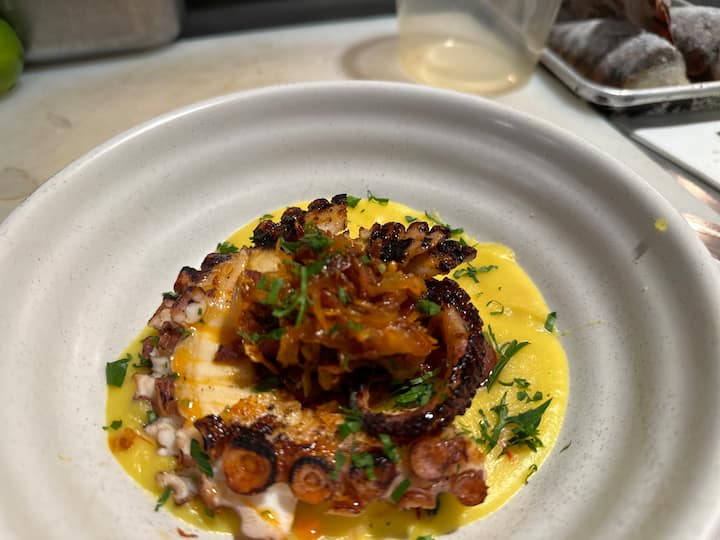 轮流供应各种西班牙小吃,包括海鲜、章鱼、火腿炸丸子、炸薯条、里奥哈辣味香肠、肉馅饼等。搭配手工面包和自制调味品,专为分享、品尝和交谈而打造。