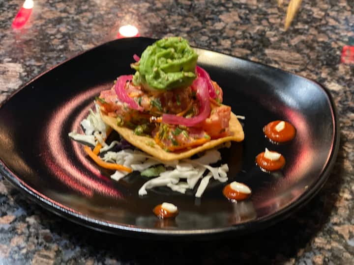 轮流供应墨西哥街头小吃风格的菜肴。 包括墨西哥街头玉米沙拉、迷你墨西哥肉酱玉米饼、烤肉迷你玉米饼和墨西哥炖肉小汉堡等小吃,配以自制莎莎酱、腌制蔬菜和新鲜配菜。