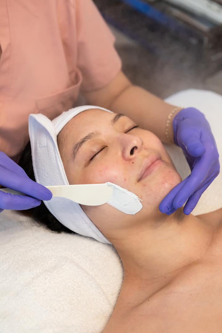 如有需要,可通过蒸汽清洁、擦洗和提取来舒缓背部。最后使用舒缓面膜和保湿乳液。