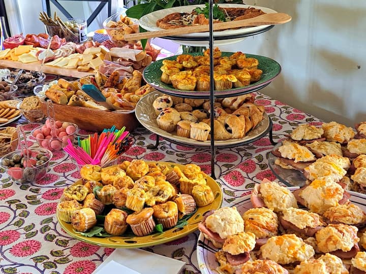 用南方风味开启新的一天:酪乳饼干、切达干酪鸡蛋、石磨玉米粥、厚切培根和桃子馅饼肉桂卷。在爱彼迎房源中享用精心制作的亚特兰大早餐。
