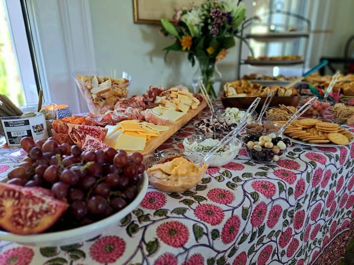 非常适合商务或午间招待:黑虾凯撒沙拉、大蒜饼干、羽衣甘蓝春卷和南方香料水果沙拉。 搭配甜茶或浸泡水。