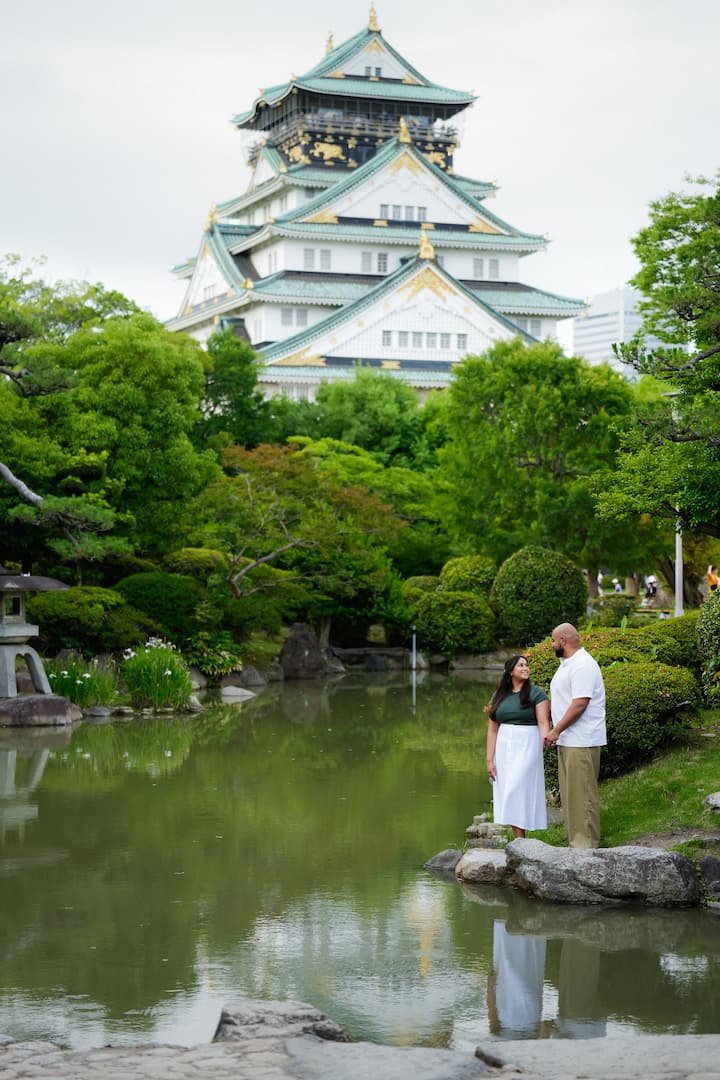 在大阪(大阪城或道顿堀)为情侣拍摄美丽回忆,提供 50 张全分辨率的最终编辑照片,适合大幅面打印,24 小时内交付。
