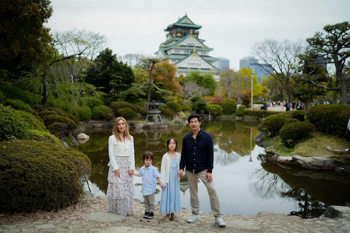 在道顿堀或大阪城堡拍摄您的家庭美好回忆,最终编辑的 50 张全分辨率照片,适合大幅面打印,24 小时内交付。