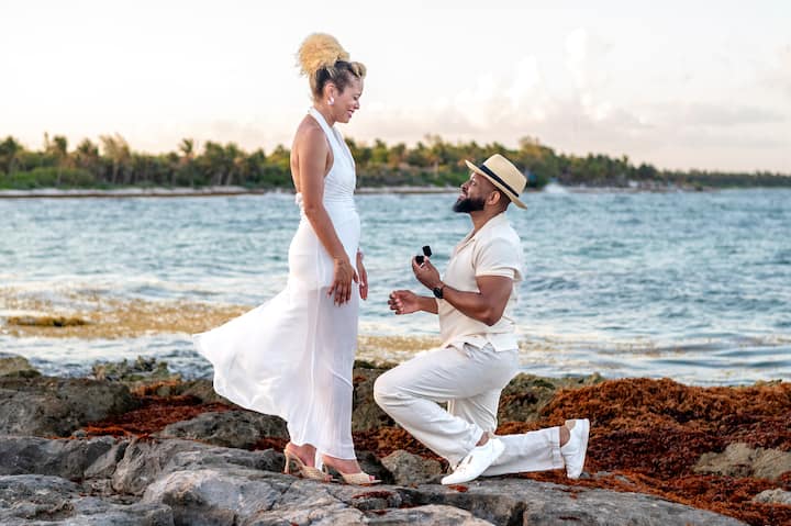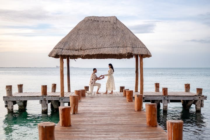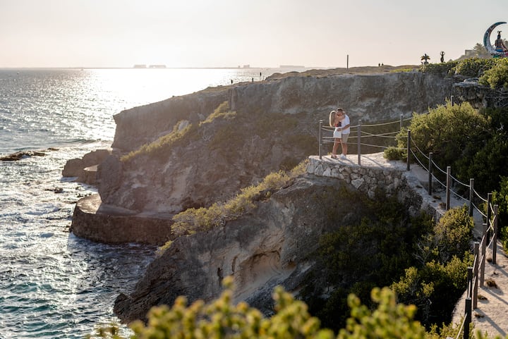 我们将花大约一个小时探索靠近坎昆的莫雷洛斯港美丽海滩,为热恋中的情侣拍摄轻松的纪录片风格照片,然后在完美的时刻,向对方求婚!