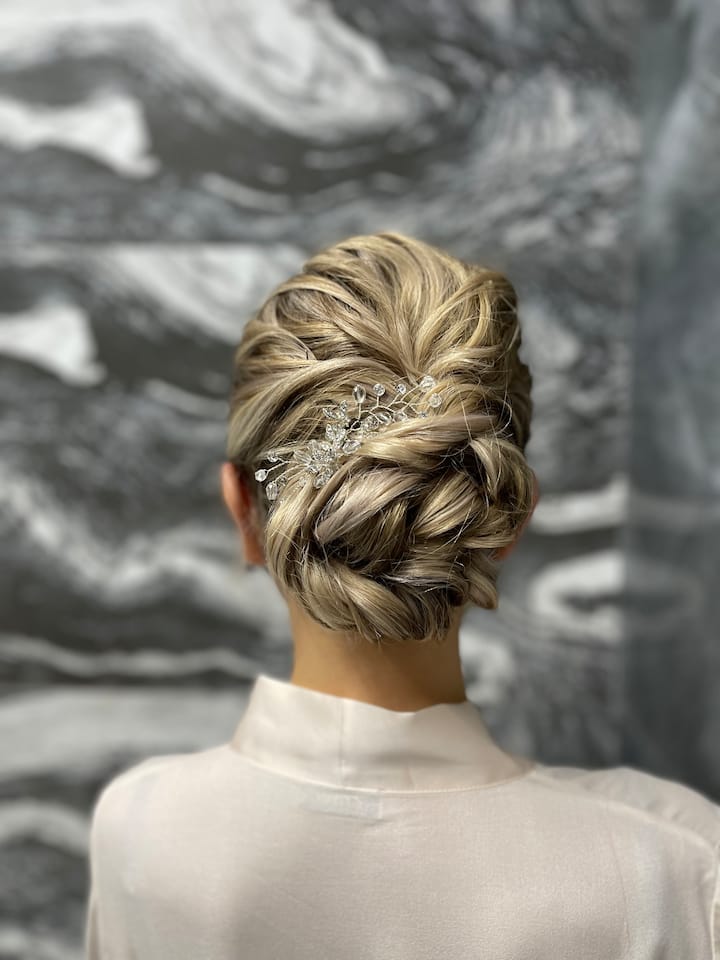 这种在沙龙造型选项包括多种褶皱风格,如高腰包、低矮包、小马尾、凌乱的风格和法式编织。