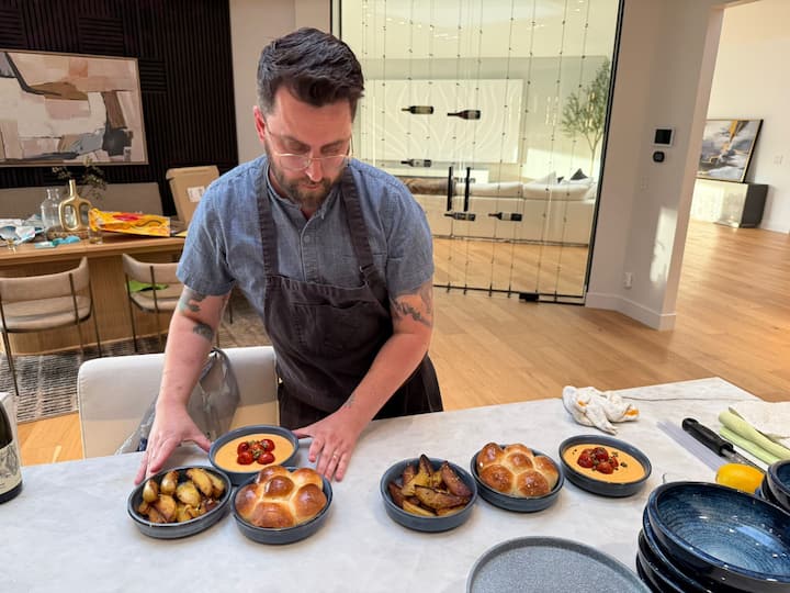 在爱彼迎房源内享用精致美食。当地大厨为您提供多道菜的时令菜单、过敏友好型菜单和全套服务