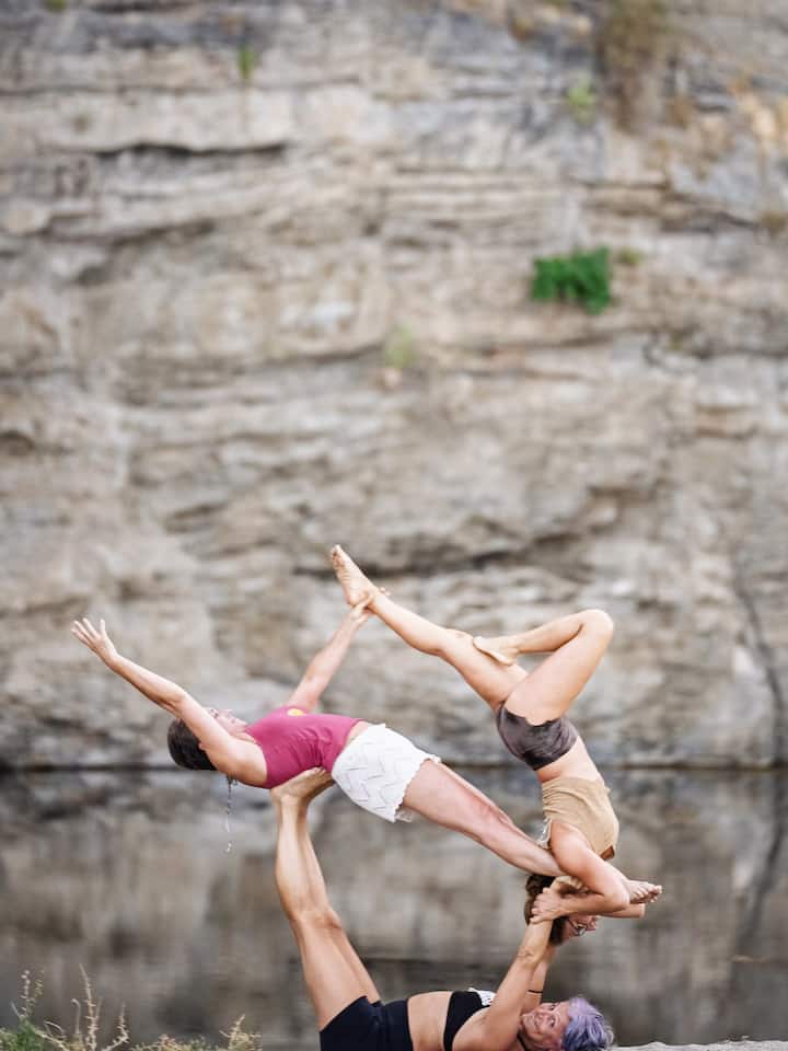 杂技瑜伽是一种将瑜伽、杂技和泰式按摩融为一体的运动。 身体接触有助于建立信任和协调,而动作序列则结合了平衡、力量和放松。 该提案适合那些希望在运动和联系的基础上进行动态练习的人。