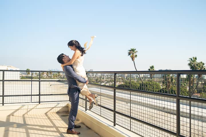 在自然光下拍摄照片,捕捉伴侣之间的特殊联系。 此拍摄适合用于订婚照、社交媒体等。