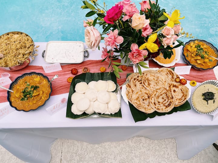 从香料开胃菜和新鲜时令前菜开始,然后是令人愉悦的主菜,包括素食和美味的肉类特色菜。 传统的南印度甜点搭配一杯温暖、芳香的印度奶茶。