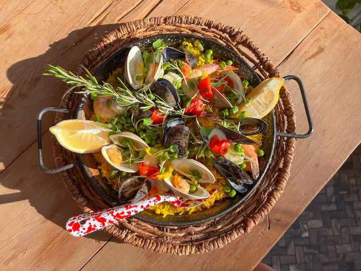 现场烹饪的西班牙自助餐,配有塔帕斯和海鲜饭。 适合团体和庆祝活动。 我带上所有食材,在您家烹饪,布置好,并保持一切干净。