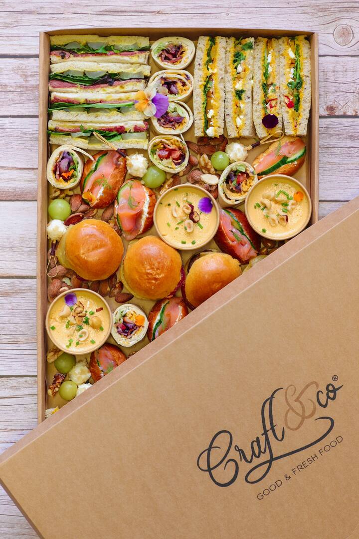 这款配方提供各种咸味和甜味:卷饼、小船、冷迷你汉堡、俱乐部三明治、烤串、小杯甜点以及一盘熟食、奶酪和生菜沙拉。 餐盘放在可回收的托盘上,配备环保的餐盘和餐具。 此服务适用于至少20位房客,每人20件。