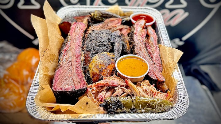 四种配菜:烟熏高达芝士通心粉、拉丁街头玉米“esquite”、芒果哈巴尼罗辣椒卷心菜沙拉、甜芒果沙拉、烤大蒜土豆泥、烤培根芦笋、烤胡萝卜或烧烤培根豆角、纯素**烧烤豆角、拉丁玉米、卷心菜沙拉、胡萝卜、大蒜土豆泥。