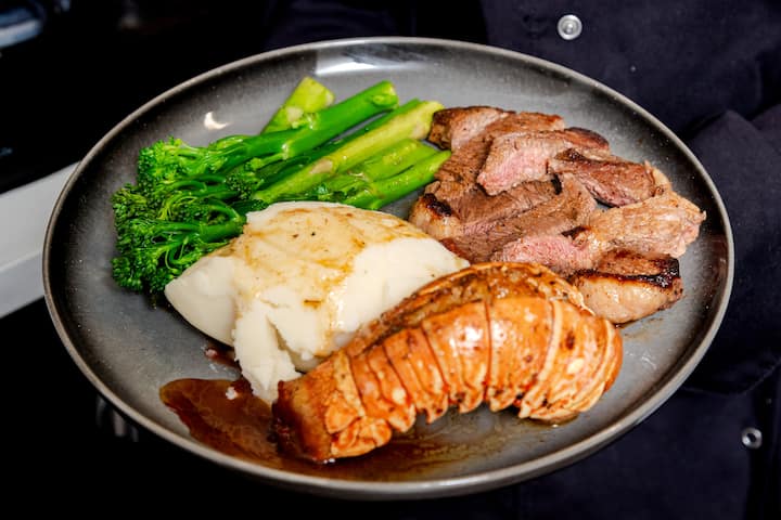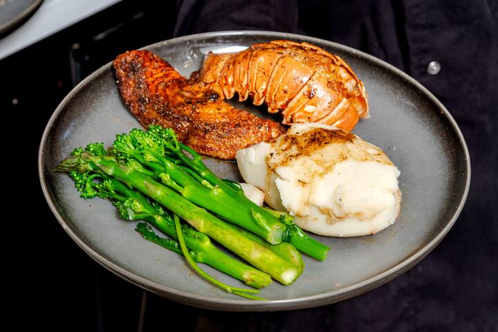先从卡真虾和柠檬胡椒鸡翅开始,享受一段充满灵魂的旅程。 第一道菜可选海鲜土豆或华夫饼和鸡肉。 主菜可以选择丰盛的海鲜煮或嫩羊排配菜。 最后,您可以享用奥利奥芝士蛋糕、桃子馅饼或红色天鹅绒华夫饼。