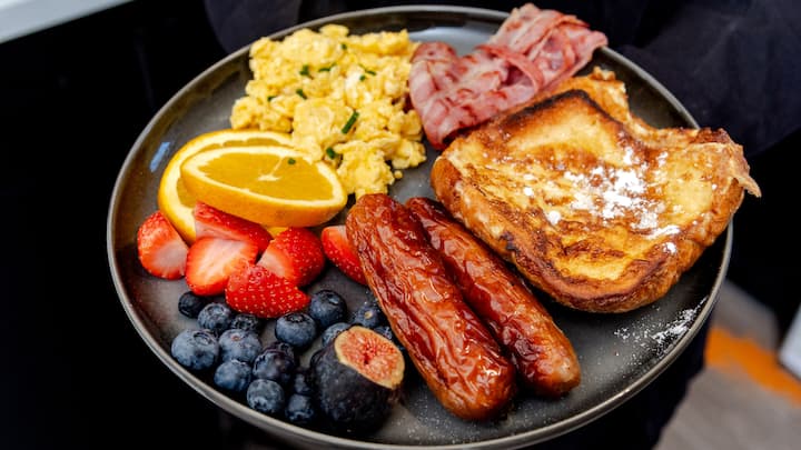 可应要求提供所有早餐选项,包括清真香肠和培根。