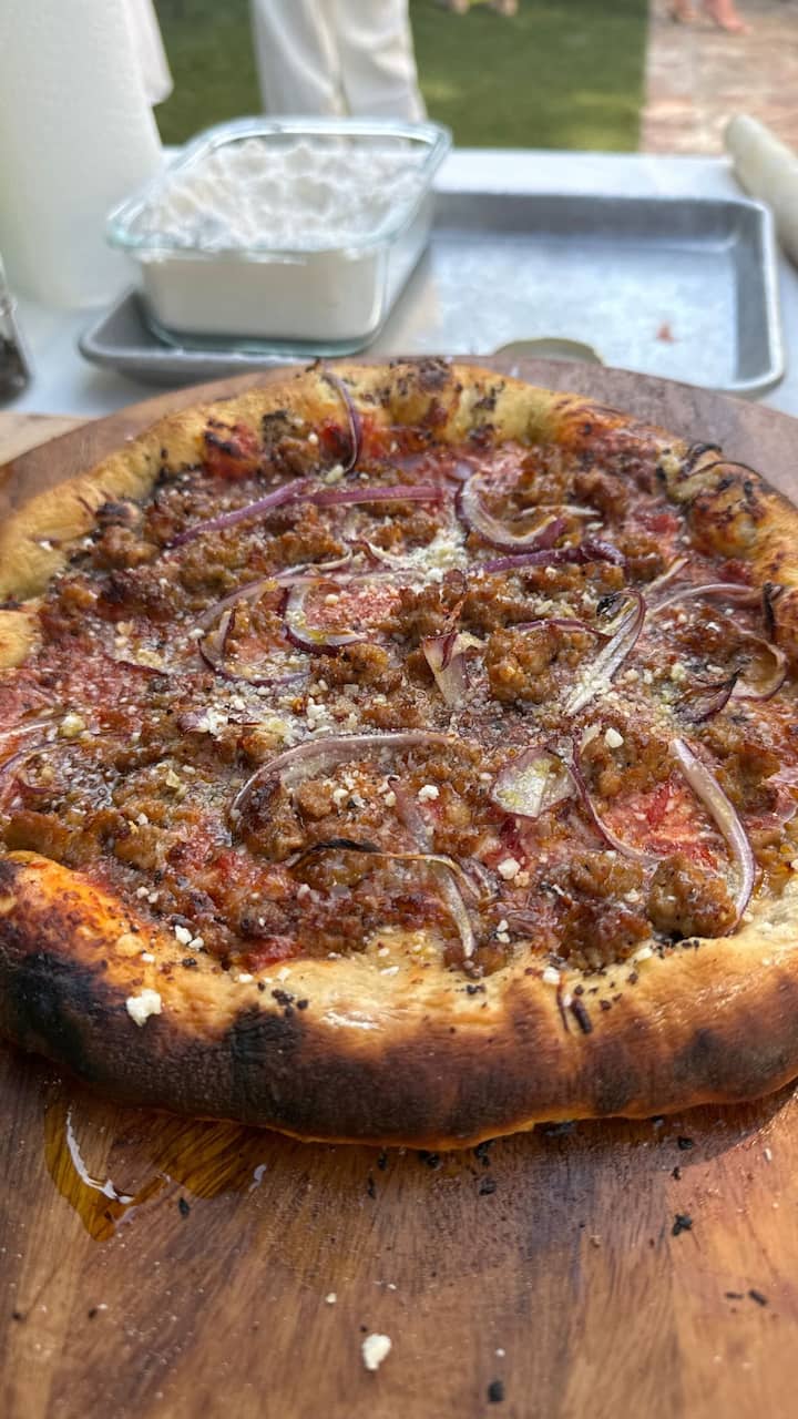 2 份沙拉、3 种披萨口味、1 份甜点,现场烹饪、服务和全套厨房清洁服务。