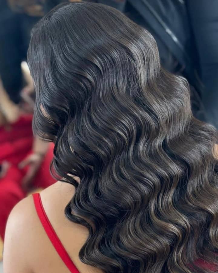 这种发型旨在让人在活动中脱颖而出。 风格可以在抛光外观、聚集或半聚集、更蓬乱的外观或水中的波浪之间变化。 该替代方案旨在将发型设计与其他配件相结合,包括使用填充剂、固定剂和制备产品。