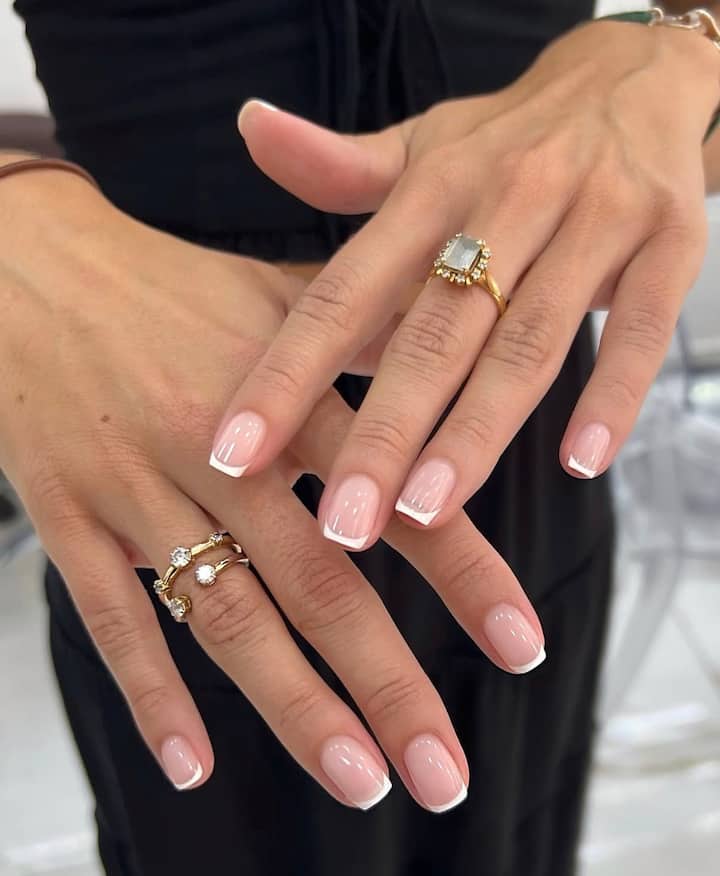这项护理包括修整指甲形状、抛光以增强光泽、去除角质层和涂抹彩色指甲油。