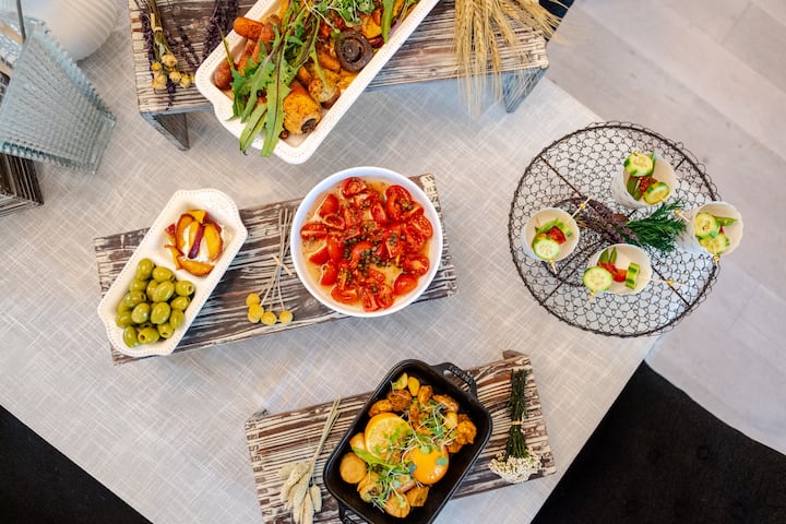 当季美味小食和手工糕点,包括精心挑选的咸味小食和手工甜点——手工甜点、咸味小食和咸味小食,包括糕点、甜点和小吃式精选美食。 每个系列都采用当地时令食材精心烹制而成,兼顾均衡、风味和视觉美感。