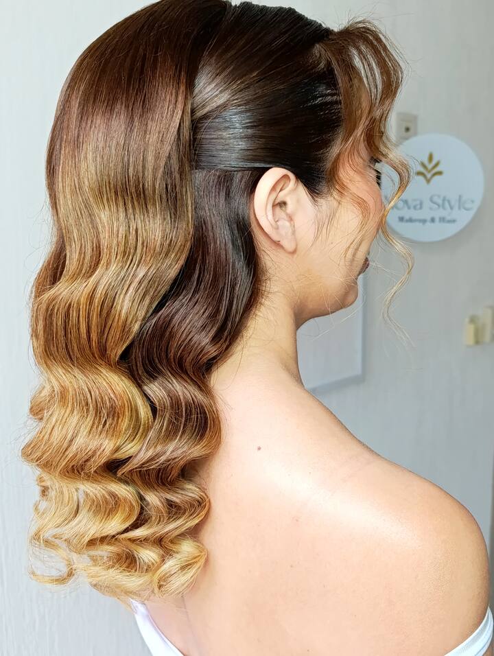 专业新娘发型,使用防潮和防毛躁产品,活动前试发,发质调理,发亮和最终定型。
