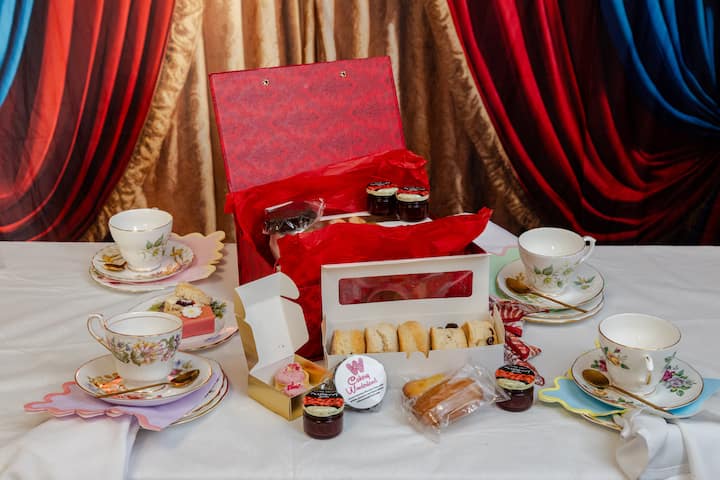 此产品仅供爱彼迎使用,可在我们独特的手工制作的下午茶手袋中过夜。 配有竹制餐具、餐巾和单独包装的下午茶包。 由我们的作者兼创始人Greg Wixted创作,是您抵达时的完美礼物,或是给房东、朋友或观光的礼物。 每盒包含2人份下午茶,包括:4份传统手指三明治、柠檬和水果司康饼、精选蛋糕、果馅饼和酥饼、奶油和果酱