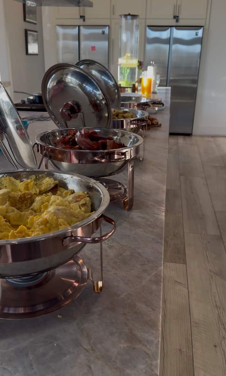 高端自助式体验,专为轻松庆祝而设计。 包括主厨精选的开胃菜站(1-2 种选择)、2 道主菜、2 道时令配菜和甜点站。 我们提供一名专业服务员,全程为您提供服务、补充和维护。 此房源融合了丰富的温馨氛围,非常适合大型休闲聚会。