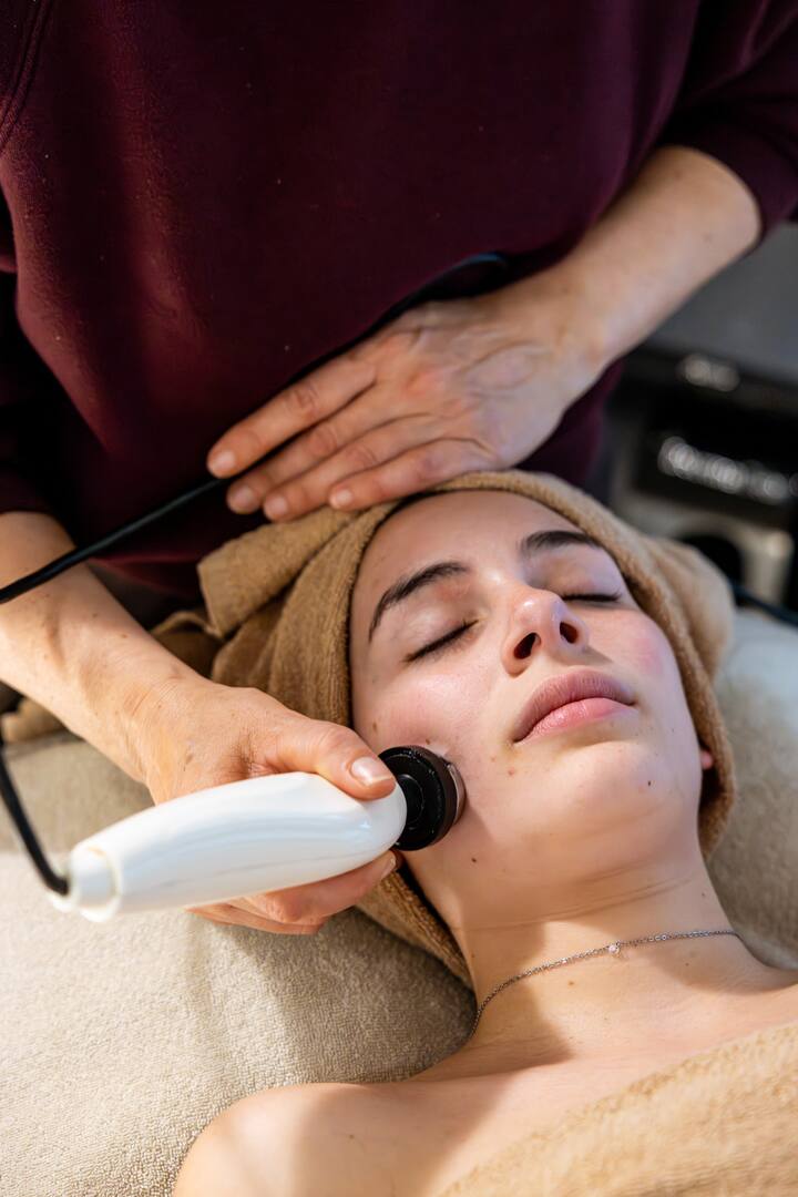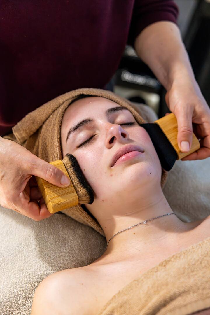 调理手法,提亮和放松面部特征。
