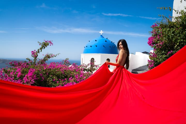 为您和 1 位同行者提供 1 小时的专业摄影服务,让你们穿着自己挑选的飞舞裙摆拍摄美照。 我们将参观蓝色圆顶、白色房屋等标志性景点,并前往多个绝美观景点。 提供私人助理和全套拍摄指导服务,确保拍摄效果尽可能完美。