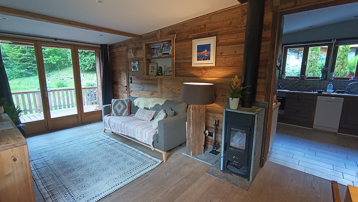C’est dans un cadre de verdure que la cabane s’est construite en 2024. Ce spacieux petit chalet de 35m2 vous offre calme et un paysage magnifique au pied des montages de la vallée de Chamonix. Idéal pour un couple ou avec des enfants, il bénéfice d'installations et d’aménagements élégants et modernes (vidéo projecteur, wifi, plancha, cuisine équipée, d’une belle terrasse au soleil couchant avec une vue magnifique sur nos montagnes et un jardin).